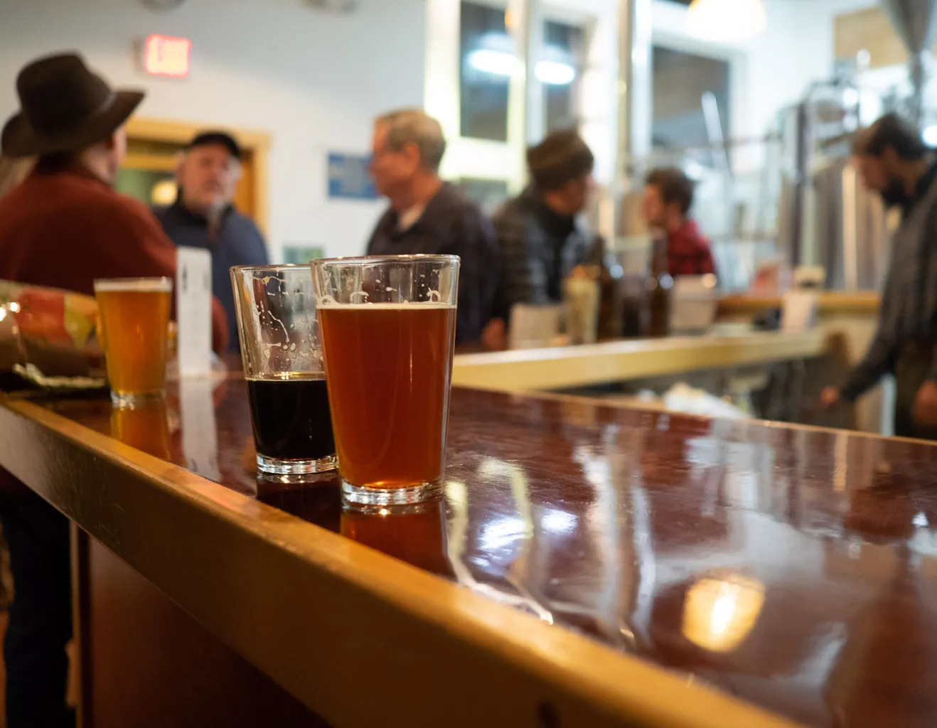 Haines Brewing Company의 바에는 맥주 한 잔이 놓여 있습니다. 9세의 알래스카산 수제 맥주 양조업자는 시음 비행 금지 정책을 가지고 있습니다. (헤인즈 브루잉)수제 맥주를 가장 잘 경험하는 방법은 무엇입니까?